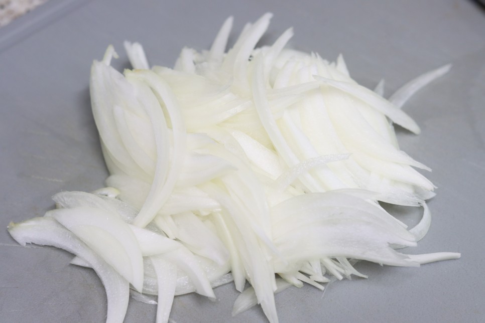 먼저 양파 1개는 얇게 슬라이스해주면 좋은데요