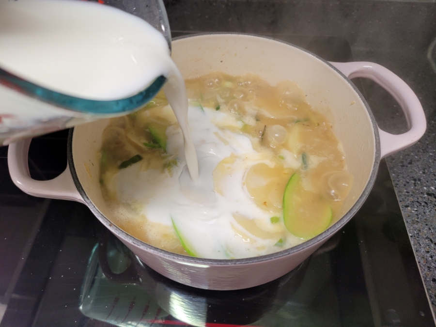 감자와 애호박이 만나니 아침 건강 스프로 맛도 영양도 훌륭하네요.