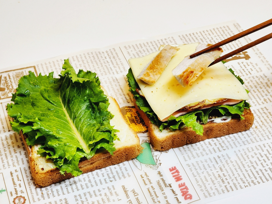 닭가슴살과 상추, 토마토 등 야채, 햄, 치즈