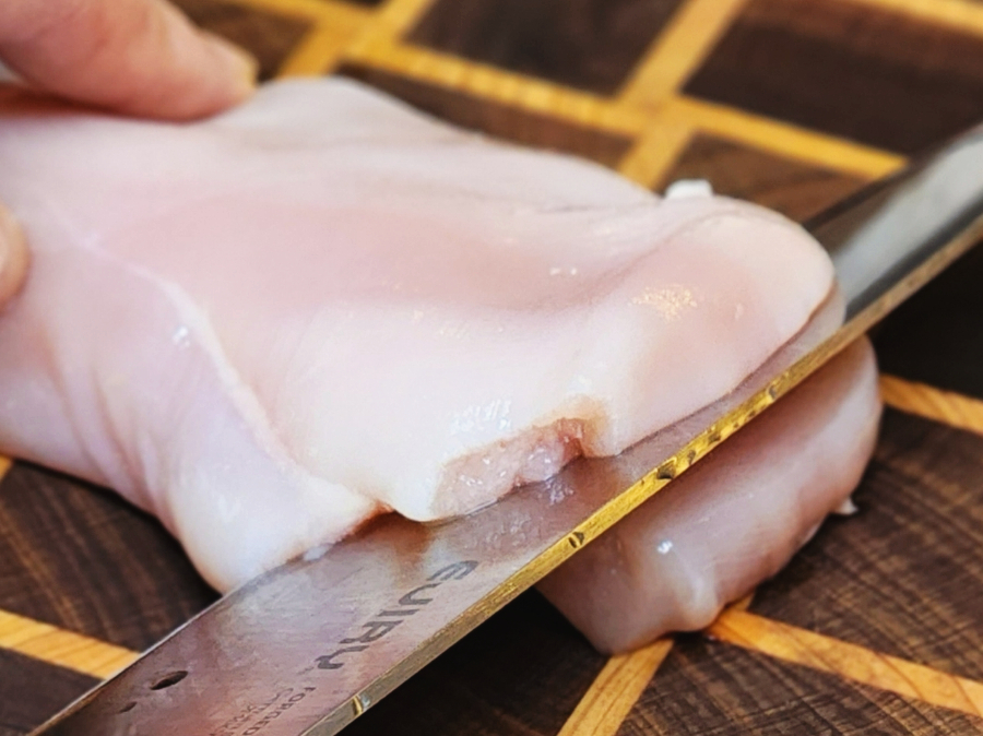 완전히 자르지 말고 얇게 펼치는 느낌으로